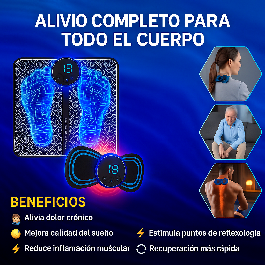 Alivia el estrés, mejora la circulación y relájate en casa con nuestro dúo perfecto: el Masajeador Mariposa EMS para cuello y espalda, y el Tapete Masajeador de Pies EMS. Compactos, portátiles y fáciles de usar, son ideales para quienes buscan bienestar sin complicaciones.